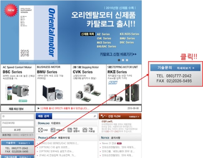 1. 인아오리엔탈모터 홈페이지에 접속한다.